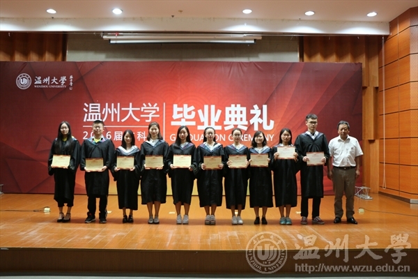 典礼上,学院院长王舜、党支部书记方乐平分别为6位获得省优秀毕业生和32位获得校优秀毕业生的同学颁发证书,副院长陈久喜为校友联络员颁发聘任,班主任为毕业生赠送纪念品。