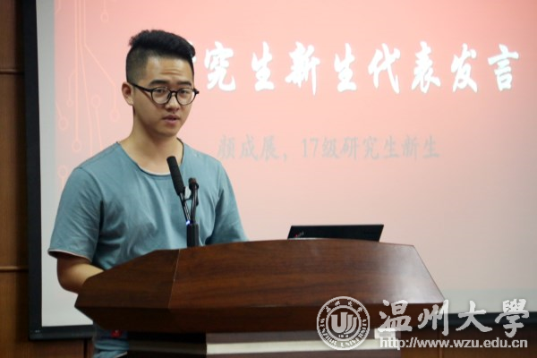 开学典礼在庄严肃穆的国歌中拉开了帷幕,来自2015级化学专业的于书玲同学分享了自己在温大两年读研期间的切身感悟,鼓励学弟学妹们在科研求知的路上首先要树立一个目标,然后保持热情,脚踏实地,让自己在科研的路上能够越走越远。2017级化学专业颜成展同学代表新生发表了初入研究生的新认识和新希望,号召大家要发挥温大人“敢为人先”的精神,不断的去学习、去观察、去思考、去实践,从而成就最好的自己。
