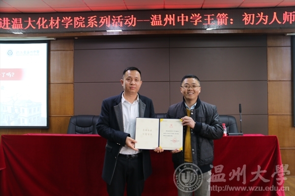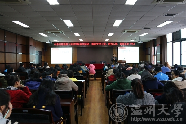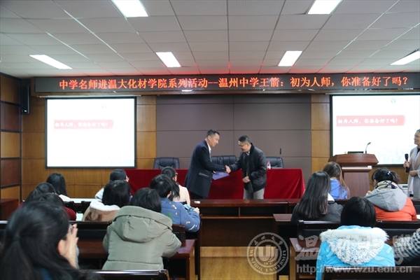 恰逢12月月中,14级、15级化学师范的同学们相聚在11B208迎来了“中学名师进化材”系列活动的第四位“大牌”教师——温州中学学科骨干、名班主任王箭。王老师在温州中学任教已达六年,带出的班级硕果累累。就是这样一位优秀的老师用他幽默风趣的语言,生动形象的班级故事,帅气的身影“征服”了在场的100多位学生,大家收获到满满的干货。