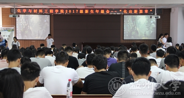 召开了2017级新生第一次“化出新篇章”主题年级会。2017级新生全体、17级各班班主任以及团委学生会全体参加了本次年级会。首先进行的是抢答环节,新生们就积极参加,体现了他们丰富的课外知识。当然在年级会里最热闹的就是个人才艺展示。每个班级都有两到三个节目,有唱歌《爱情转移》、《绅士》、《成都》、《淋雨一直走》、《和你一样》、《一个人》、《天亮了》、《一次就好》、《九张机》,吉他弹唱《小幸运》,独舞《holiday》,朗诵《相信未来》,《温大之梦》,演讲《笑对大学生活》。其中最惊艳全场的就是越剧表演《送花楼会》,越剧有着丰富的历史,虽然人人都知道,但能演绎的没几个人。全场最带动气氛就是化类2班的独舞,现场的气氛随着音乐在不断高涨。《笑对大学生活》演讲是全英文演讲,当然也是震惊全场,流利的英语让许多学长学姐也自愧不如。每一个展示才艺的同学都很自信,向我们展示了他们最自信的一面。