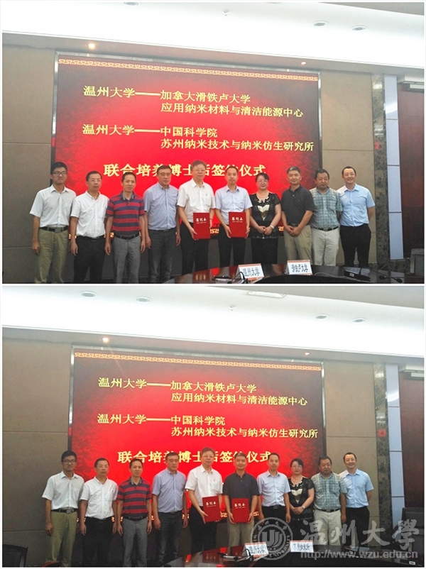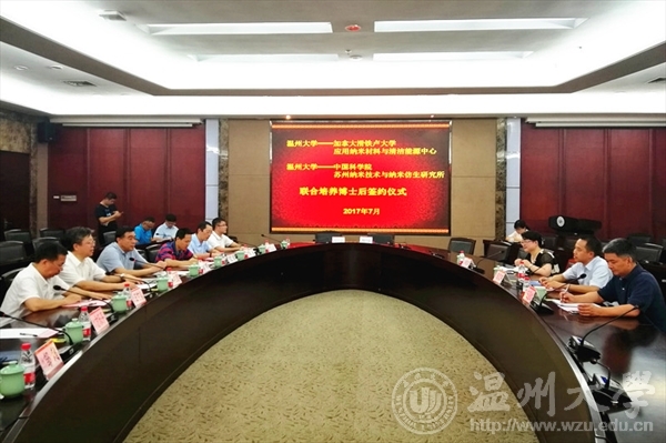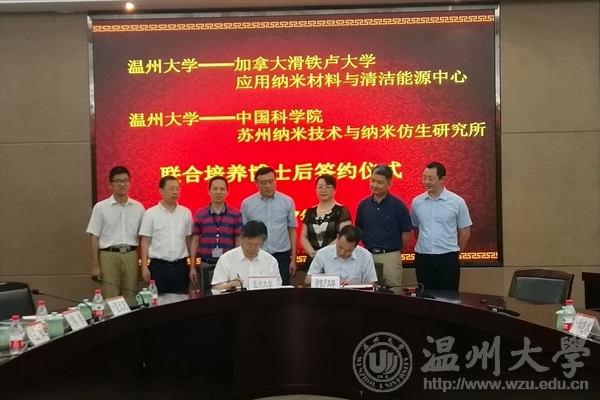 7月10日下午,我校与加拿大滑铁卢大学应用纳米材料与清洁能源中心、中国科学院苏州纳米技术与纳米仿生研究所举行联合培养博士后签约仪式。加拿大滑铁卢大学陈忠伟院士、苏州纳米研究所王强斌研究员、温州市外国专家局局长林晓冰、校长李校堃、副校长薛伟以及人事处、外事处、研究生部、成人视频