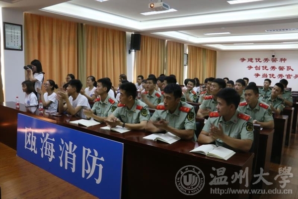 党总支副书记潘从义,学生科副科长易招娣,温州市公安消防支队牛山中队指导员张余以及牛山中队全体官兵和烈火雄心暑期实践队全体队员。